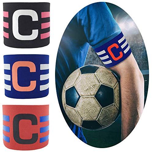 Colori multipli:Disponibile in fascia da braccio in 3 colori, ti consente di scegliere quello giusto da abbinare alla tuta della tua squadra di casa o fuori casa Include 1 pezzi Blu, 1 pezzi rosso e 1 pezzi nero