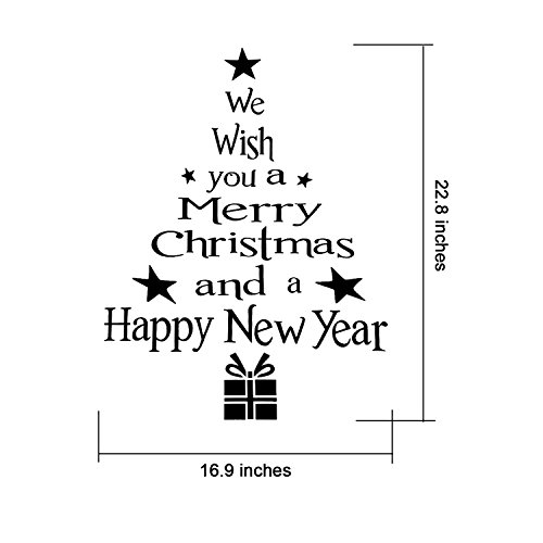 2 Pezzi Muro Decalcomanie di Natale Adesivi Lettere e Albero di Natale Finestra Camera Casa Decor Parete Arte Decalcomania Murali (Nero)