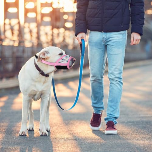 2 Pezzi Museruola Cane Taglia Grande, Museruola Cane in Nylon con Motivo, Morbida Museruola per Cani a Maschera Traspirante, Contro Morsi e Abbaio, con Collare e Sacchetto per La Cacca (L)
