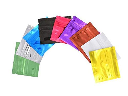 100 Pezzi Mylar Foil Ziplock Bag Campione della autosigillante Fronte-Retro Color Flat Ziplock Bags Food Grade Storage sottovuoto Perfetto per Cosmetici tè 8.5 x 13 cm