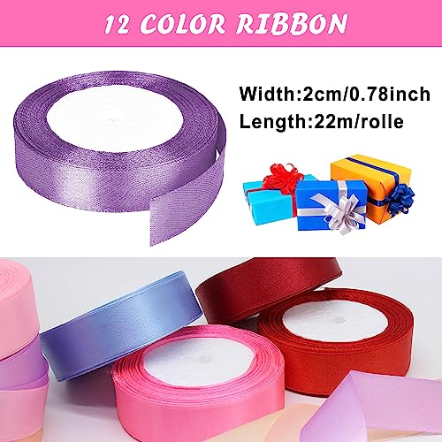 12 Pezzi Nastri Colorati, 2cm x 22m Nastro Regalo, 12 Colore Nastro Raso, Nastro per Bomboniere, Nastro Colorato Adatto per Matrimoni Feste Festival Confezioni Regalo Bouquet