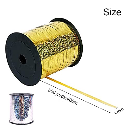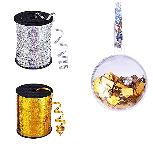 2 Pezzi Nastro d'Oro d'Argento, Decorazione a Nastro, Nastro Confezione Regalo, Nastro a Palloncino, Nastro Decorativo Dorato, per Feste Wedding Festival Fiorista 500 Yard/400m (Oro, Argento)