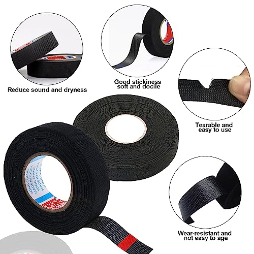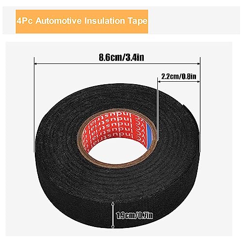 4 Pezzi Nastro Isolante in Tessuto, Nastro per Cablaggio Automobilistico, Nastro Telato Nero Tessuto, Nastro Telato Nero per Cablaggi, Nastro Isolante in Tessuto Alta Viscosità, Per Riparazione Auto