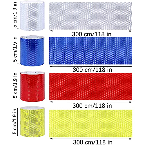 4 Pezzi Nastro Riflettente, Nastro di Sicurezza Impermeabile, Nastro Riflettente di Avvertimento, Nastro Riflettente Impermeabile Autoadesivo Alta Visibilità, per Veicoli Auto, Biciclette (4 Colori)