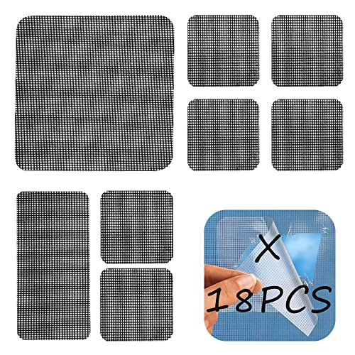 18 Pezzi Nastro per Riparare Zanzariere Schermi di Finestre,Nastro di Riparazione per Zanzariera Autoadesivo,Nastro per Riparare in Fibra di Vetro con Adesivo Forte per Finestre/Porte/Zanzariere, Nero