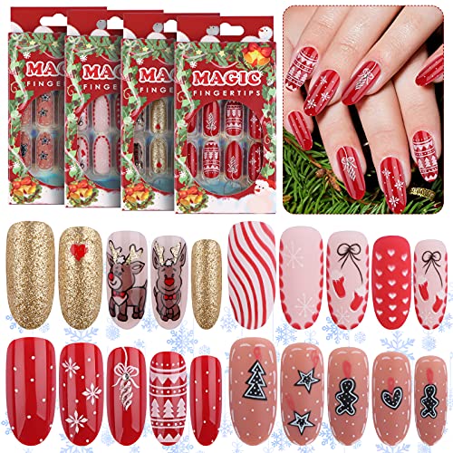 【La confezione include】 Riceverai 4 scatole di unghie finte natalizie, ogni scatola include 24 unghie finte bara (12 diverse dimensioni), 24 linguette adesive per unghie, 1 bastoncino di legno e 1 lima per unghie. Quantità sufficiente e diverse dimensioni possono essere convenienti per diversi esigenze quotidiane, puoi anche condividere con i tuoi amici e familiari.