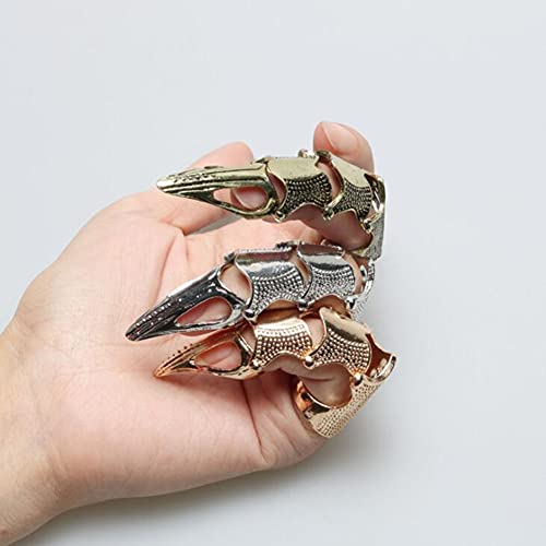 3 pezzi (nero+argento+oro) anello completo armatura nocche articolazione punk gotico rock incernierato anelli a doppio anello lungo anelli gioielli Halloween Cosplay costume accessori