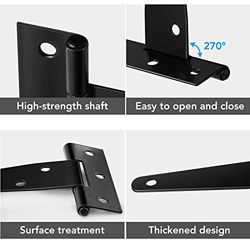 4 Pezzi Nero Cerniere a T, Cerniere per Porte, Cerniere a T Resistenti per Cancelli in Legno o Metallo, Resistenti Cerniere per Riporre Capannoni, Porte, Granai, Cancelli (6 Pollici)