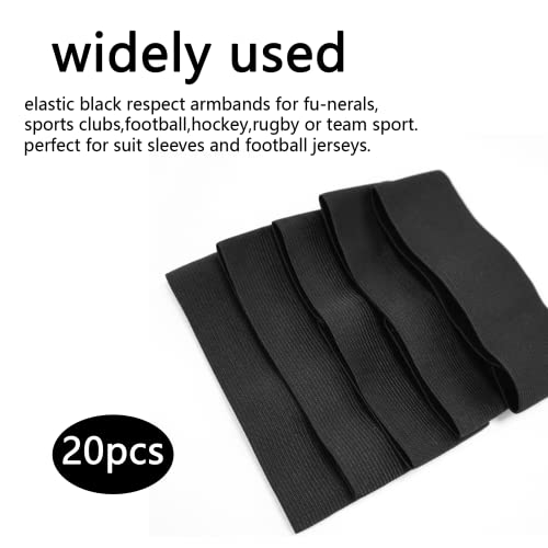 20 Pezzi Nero Elastico Braccio Fascia da Braccio Elastica Fascia da Lutto Per Ii Ghiaccio e La Neve, Tiro a Segno,Corsa, Calcio, Basket, Funerali, Lutto, Icordo