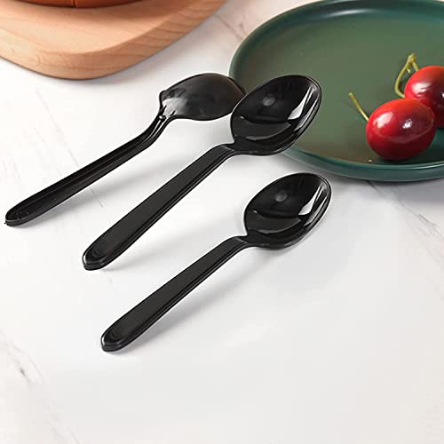 100 Pezzi Nero Posate Plastica, Cucchiaini, Posate Plastica, Cucchiai Plastica, Forchette Plastica Stoviglie per Cene, Riutilizzabili, Lavabili in Lavastoviglie