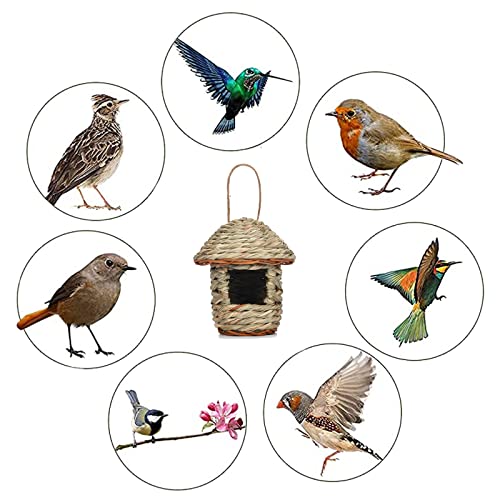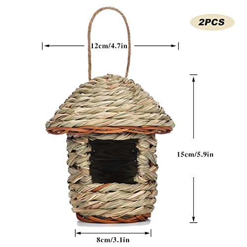 2 Pezzi Nido Uccello Erba Casetta, Nido per Uccelli da Appendere, Nido di Paglia per Uccelli, Nido Uccellino per Cinciallegre, Pettirossi, Passeri, Fringuelli Zebrati e Altri Uccelli, 15x14CM