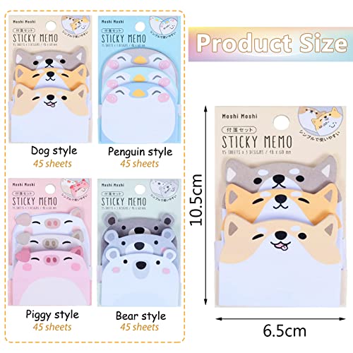 4 Pezzi Note Adesive Colorate a Forma Animale Blocchetti Memo Adesivi Colorate Note Appiccicose per Ufficio, Scuola (180 pagine)
