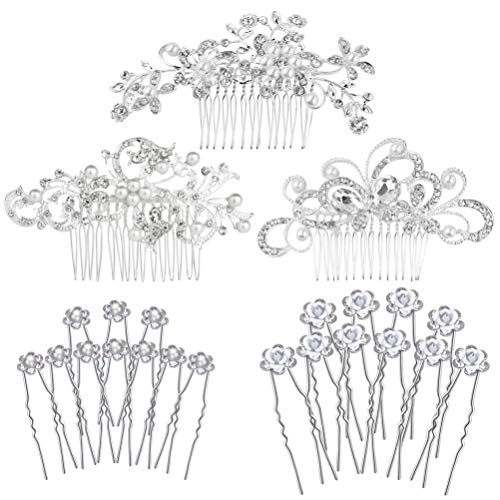 23 Pezzi Nuziale Pettine per Capelli da Sposa Capelli Testa Pin Perla Imitazione Fiore Forcine Hair Clips Accessori per Donne e Ragazze