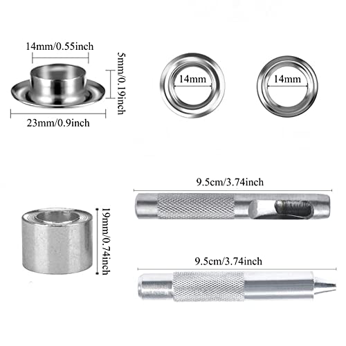 100 Pezzi Occhiello Strumento Kit KOSHIFU Set Occhielli Grommet Metallici 14mm con Punzone Attrezzo di Regolazione Rondelle Occhielli Passacavo per Tende Pelle Teloni Borse Scarpe Abbigliamento