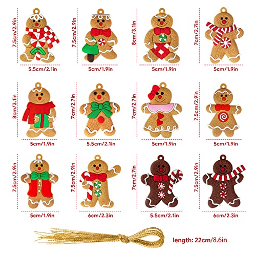 12 Pezzi Omino Pan di Zenzero Natale, Edonkvi PVC Addobbi Ciondoli di Gingerbread set, Ornamento Pendenti con Spago per Albero di Natale e Festa la Casa Decorazioni