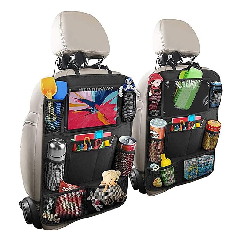 Più tasche, più spazio di archiviazione Diversi tipi di tasche, tablet trasparente, finestra per iPad, lascia che il sedile posteriore si goda il momento gioioso della visualizzazione del tablet in movimento. Ti dà più spazio per bevande, snack, giocattoli, riviste e libri. Rendi il tuo viaggio più piacevole e rilassante. FACILE DA INSTALLARE La protezione del seggiolino auto si aggancia semplicemente al poggiatesta e si fissa alla parte inferiore del sedile con l'elastico inferiore. Di solito non è necessario fissare lo schienale, ma puoi scegliere di utilizzare gli spallacci inclusi. Tessuto oxford di alta qualità, lavorazione squisita Tessuto oxford selezionato di alta qualità, molto resistente all'usura, perfetta combinazione di materiali, sopportando più peso, lavorazione speciale, in modo che il prodotto si adatti meglio all'auto. Resistente e facile da pulire Realizzato in tessuto Oxford 600D e nylon (rete del sacco), non facile da raccogliere la polvere, il il coperchio