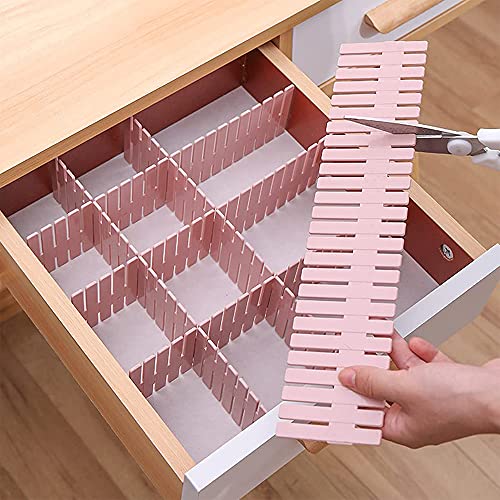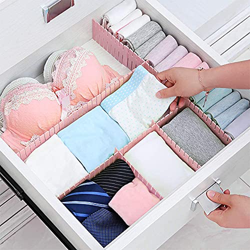 12 Pezzi Organizer per Cassetti, Divisori per Cassetti, Organizer per Cassetti Regolabile, Plastica Regolabile Divisorio Cassetti in Plastica per Utensili, Strumenti per Il Trucco, Calzini (Rosa)
