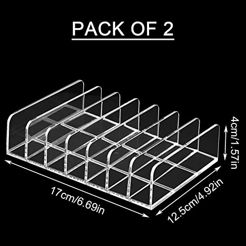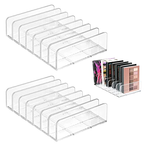 【14 scomparti】 2 organizer per palette di ombretti con 14 scomparti separati. Possono essere usati da soli o in combinazione. Misura 17 x 12,5 x 4 cm e ha 7 scomparti ciascuno. I divisori compatti di varie altezze ti aiutano a conservare i cosmetici in base alle dimensioni e a ottenere ciò di cui hai bisogno in modo rapido e semplice. Mantieni i tuoi controsoffitti puliti e in ordine!