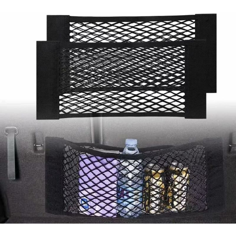 Materiale: nylon + nastro in velcro DIMENSIONE UNIVERSALE - Dimensioni: 55 x 25 cm, l'organizer per veicoli si attacca facilmente e saldamente al lato della porta/parete dal retro. Facile da installare: usa i cinturini in velcro per fissarli al feltro dello stivale. COMODO E CONVENIENTE: le tasche in tessuto elastico in stile rete di polipropilene, elastiche per caricare facilmente e contenere oggetti pesanti come giocattoli, palline, attrezzi per la manutenzione dell'auto, proteggeranno tutti gli oggetti dal rotolamento durante i lunghi viaggi e accidentati. Design salvaspazio: minimo ingombro e offre più spazio dietro i sedili o nel bagagliaio. Mantieni il tuo veicolo pulito, organizzato e privo di rifiuti. Quando non è in uso, l'organizer per il bagagliaio del SUV può essere ripiegato su e giù per riporlo facilmente.