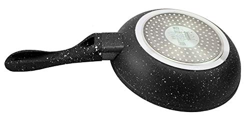 Fondo termico resistente per una distribuzione ottimale del calore e risparmio energetico, in alluminio pressofuso con rivestimento triplo, come su marmo, friggere senza grassi e olio.