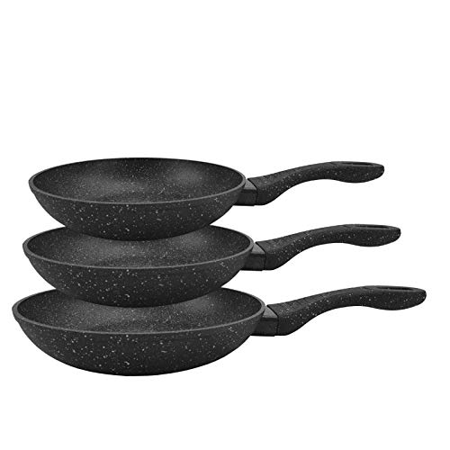 FRX VL 3 Pezzi Set padelle Set Padelle Ceramica Padella a induzione Antiaderente - Set di padelle Set di padelle Nero