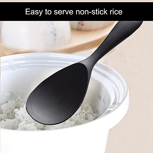 2 Pezzi Paletta Riso,Nero Cucchiai Da Cucina Antiaderenti In Silicone,Cucchiai Da Cucina In Silicone da Grande,Resistente al Calore, Per Mescolatura,Di Patate,Di Riso O Altro Servire Zuppe e Altro