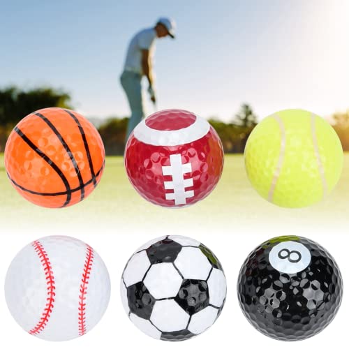 6 Pezzi Palline da Golf a Forma di Pallacanestro Calcio Pallavolo Tennis Baseball e Rugby, Pallina da Golf Costruzione a Doppio Strato