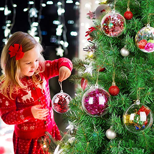 【FACILE DA USARE】Le nostre palle Natale di plastica trasparente infrangibile sono disponibili in due metà e si adattano bene insieme. Puoi mettere quello che vuoi dentro e poi legarlo con un nastro, che è proprio così semplice e rende un'ottima attività per tenere occupati i tuoi bambini per alcune ore.