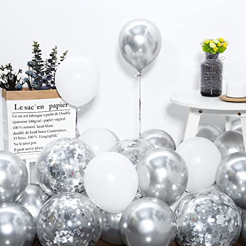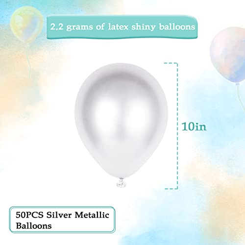 Palloncini metallizzati argento: Il pacchetto include 50 palloncini metallici argento lucido da 10 pollici. Ognuno di questi palloncini in lattice pesa 2,2 g. Offrendoti una buona scelta per realizzare belle decorazioni per interni o esterni, per creare momenti più gioiosi per famiglie e amici. Decorazioni per feste perfette per aggiungere un'atmosfera romantica e festosa.