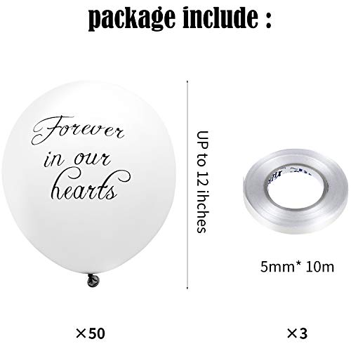 Occasioni adatte: adatto per palloncini funebri, decorazioni commemorative, spargimento di cenere, servizio di sepoltura o per celebrare l'anniversario della morte di una persona cara, fare una dichiarazione malinconica in stile e con il testo nero che rimane "per sempre nei nostri cuori"