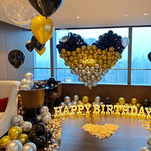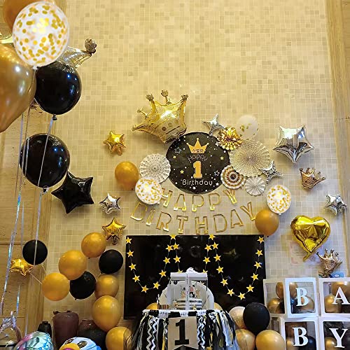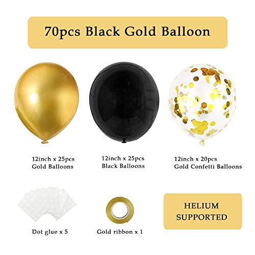 70 Pezzi Palloncini Coriandoli Neri e Oro, Palloncini in Lattice Nero Oro Metallizzato da 30 cm Palloncini per Feste Palloncini a Elio per Baby Shower, Compleanno, Laurea, Decorazione Anniversario
