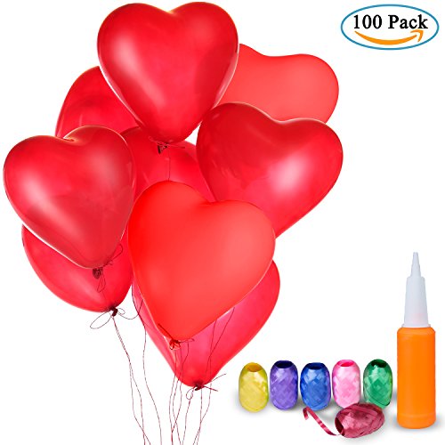 100 Pezzi - Palloncini Cuore MOOKLIN Palloncini amore con cuore a forma di Palloncino in Lattice per Nozze partito Compleanno o decorazione natalizia - Rosso