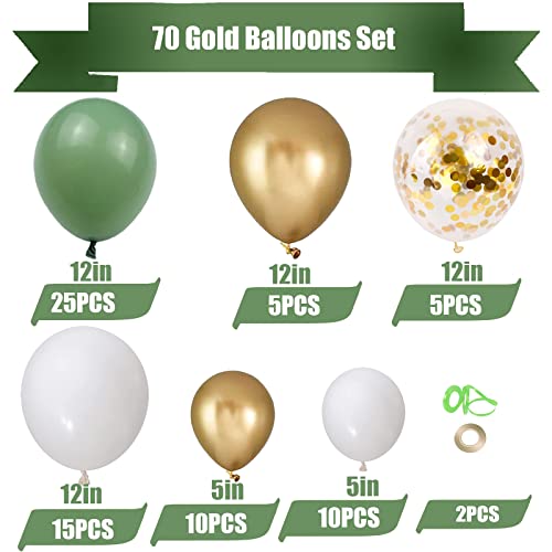 70 pezzi Palloncini Verde Oliva Salvia Oro Bianco Elio Palloncini Verdi Dorati Coriandoli Metallizzato Palloncini Lattice per Matrimonio Baby Shower, Compleanno Laurea Feste Decorazione