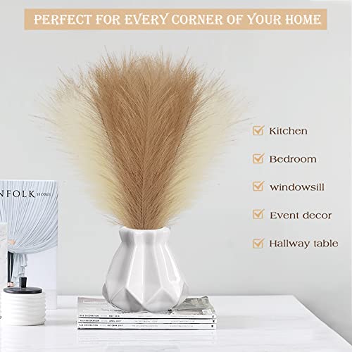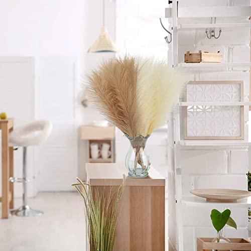 6 Pezzi Pampas Artificiale, 45 cm Erba Pampas Artificiale Fluffy 6 Steli Pampas Erba per Boho Home Decor, Faux Pampas Erba Fiori per La Decorazione Della Casa di Nozze (Beige e Marrone)