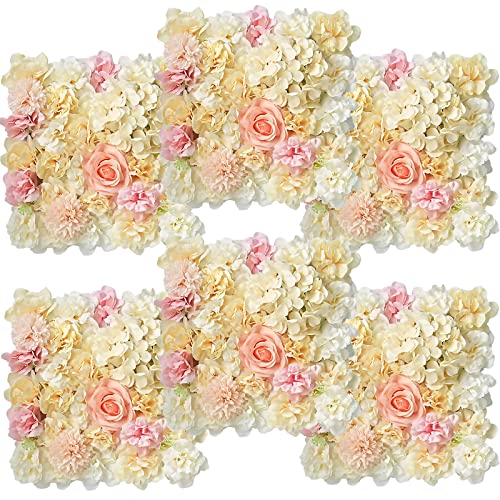 6 Pezzi Pannello Murale di Fiori Artificiali, 38 * 38 cm Fiori di Seta da Parete Rosa, Rosa Fiore Parete Pannelli, per Matrimoni, Feste, Fondali, Giardini, Fai da Te (Giallo Rosa)