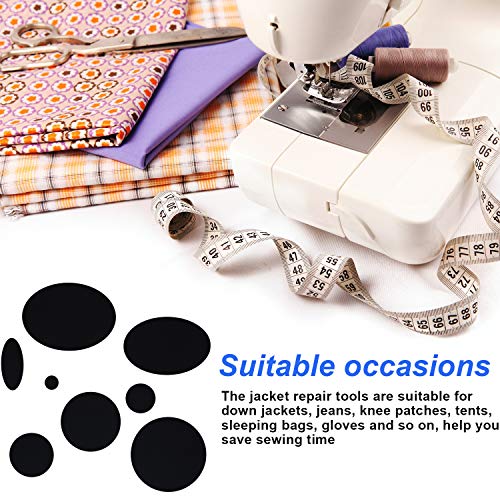80 Pezzi Patch di Riparazione in Nylon Nastro di Riparazione Autoadesivo Patch di Riparazione per Sacco a Pelo per Riparazione della Tuta della Tenda della Giacca, Nero, 8 Taglia Rotonda e Ovale