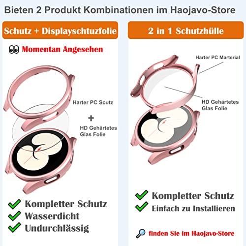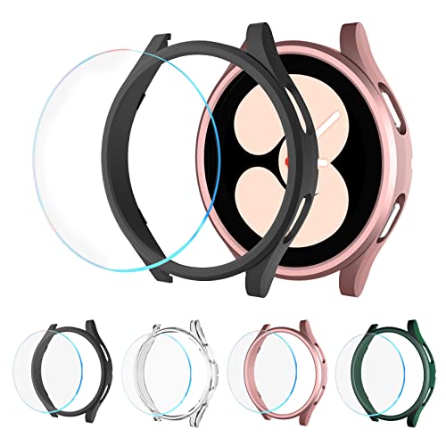 4+4 - Pezzi Pellicola e Custodia Compatibile con Galaxy Watch 4 40mm, Haojavo Cover Paraurti PC Rigida Protezioni + HD Vetro Temperata Combinato | schermo protettiva accessori per Samsung Watch4 40 mm