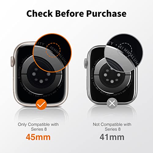Facile installazione: Viene fornito con uno strumento di installazione e video online, è possibile applicare facilmente la pellicola protettiva per Apple Watch da 44 mm/45 mm senza esperienza. Installazione semplice e nessun residuo residuo quando lo togli. [ATTENZIONE: guarda il nostro video di installazione]