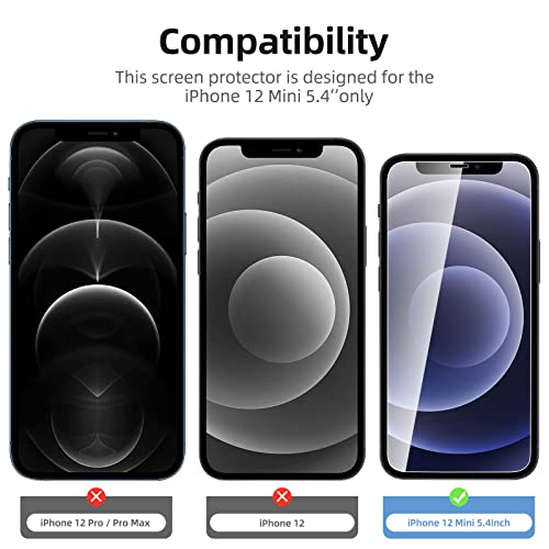 Contenuto: 2 protezioni per lo schermo in vetro temperato e 2 protezioni per l'obiettivo della fotocamera per iPhone 12 Mini. Doppia protezione anteriore e posteriore per il telefono