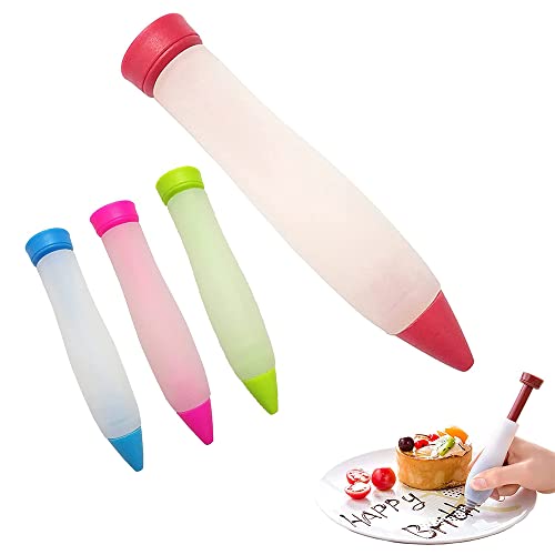 4 Pezzi Penna Decorazione in Silicone, Cioccolato Siringa, Torta Silicone Penna, Scrivere Decorazioni, Torte Penna, per Scrivere Pasticceria Penne, Glassare Marmellata di Cioccolato Penna