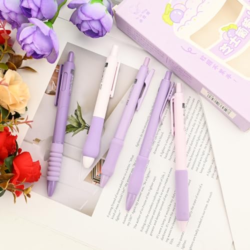 5 Pezzi Penna Roller a Inchiostro Gel Retrattili a Scatto Penne a Sfera, 0,5 mm Penne a Sfera Nera Penna Gel Estetiche Penne a Sfera per Scolari Scrivere e Prendere Appunti per Scolari (Viola)