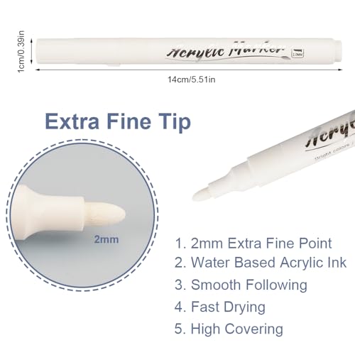 【Pennino Fine da 2 mm】 Il pennino arrotondato da 2 mm ha un design delicato, pennarello bianco scrive in modo molto fluido, con un flusso d'inchiostro uniforme e facile da controllare;