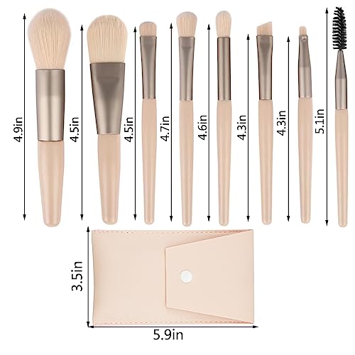 8 Pezzi Pennelli Trucco Professionali, Set Pennelli Make Up con Trousse in Pelle PU, Mini Pennello per Correttore per Occhi Viso Fard Fondotinta Cipria Correttore, Beige