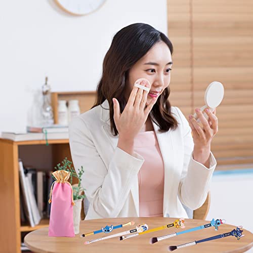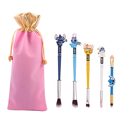 5 pezzi Pennelli Trucco Serie Stitch FAMILIO-Set di pennelli per trucco dei cartoni animati Pennello Ombretto Pennello per fondotinta Adatto per il trucco delle ragazze