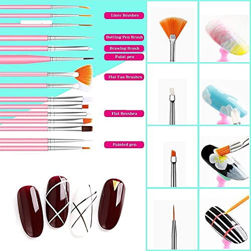 15 Pezzi Pennelli Unghie, Rosa Pennelli Unghie Art,Nail Art Pennelli Set per Painting Detailing, Decorazioni Unghie Penne