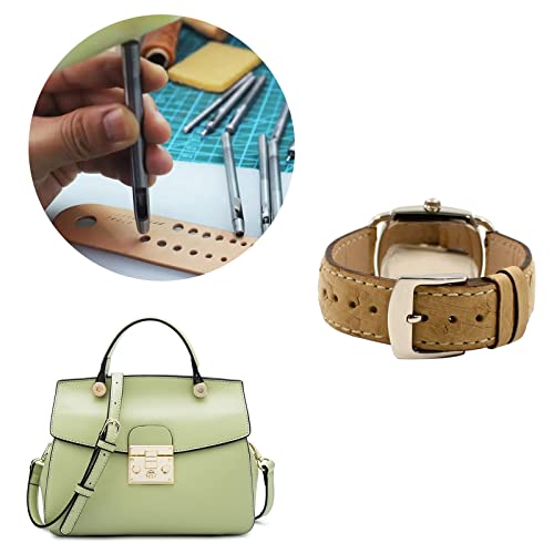 [Ampia gamma di applicazioni]: Perforatrice Vite in Pelle penetra facilmente in più strati di tessuto, è facile da tagliare e può essere utilizzato per pelle, borse, cinturini di orologi, cinture, cinturini di chiusura, cartelloni pubblicitari, scarpe e altri tessuti.