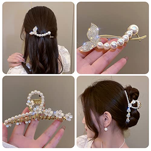 2 Pezzi, Perla Clip Di Capelli, Fermagli Per Capelli, Artigli Per Capelli In Metallo Pinze, Mollettone Capelli Antiscivolo, Per Capelli Per Donne e Ragazze,Per Capelli Spessi e Sottili