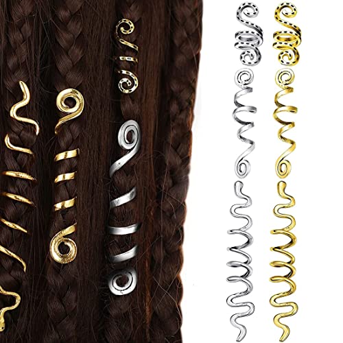 6 Pezzi Perline per Capelli Dreadlocks, Bobina dei Capelli Anelli a Treccia per Capelli, Clip per treccia a foglia di serpente lunare Dreadlocks per Accessori Capelli Decorazione (oro e argento)