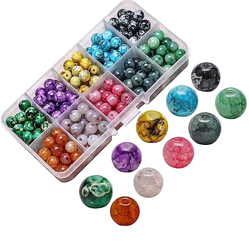 200 Pezzi Perline Di Vetro Crackle,Kit Con Perline Chakra,Perline Di Pietra Preziosa Naturale Rotonde,Fai Da Te Con Scatole Perline Crepe Di Colori Per Fare Gioielli e Artigianato