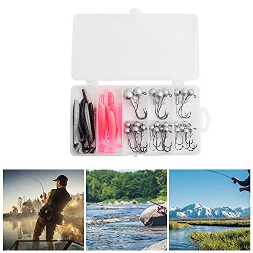 【La Confezione Include】: Riceverai 27 ganci per jig head, 20 esche da pesca morbide, una scatola di plastica e ganci per jig head con 6 misure. La scatola di plastica trasparente può contenere diversi ganci per la testa della pinza per comodità la prossima volta.